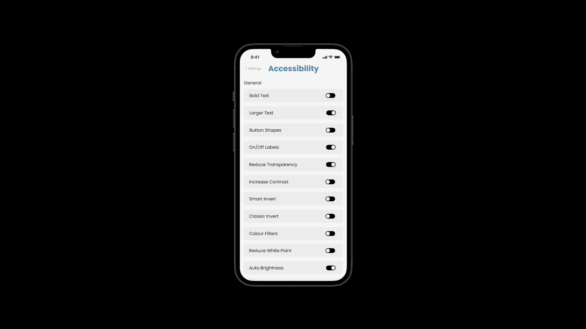 Throughout the case study a big focus is being accessible and easy to use, and while it seems simple in concept, as you add more and more features, it’s very easy to become messy and overwhelming, and have that feature you just made become just another feature that’s hard to find. In this project I learned a lot about setting organization but also how important labeling can be for a setting. In a lot of software, settings have a name and like me sometimes I need to google what that setting name is before I turn it on or off. So, in Open Door we opted to just tell you what the setting does, such as “auto brightness” or “on/off labels”. While it's small in theory, it makes a lot of difference when you don’t have to google what everything does!